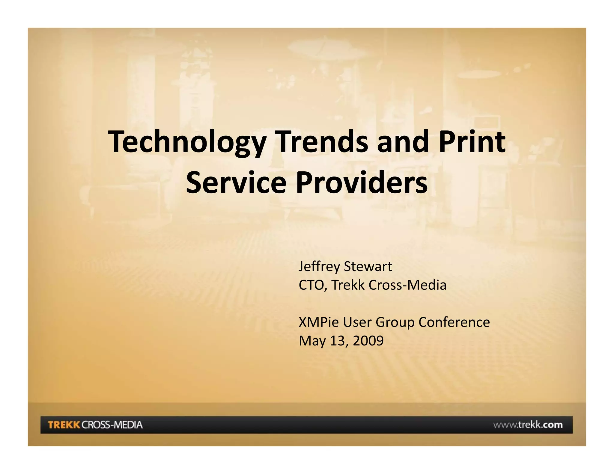 This document summarizes key technology trends and their impact on print service providers, including: the growth of ubiquitous broadband connectivity enabling new applications; content and asset management systems; automated multichannel formatting; social media and user-generated content; and how print providers can compete with free digital content by adopting models like freemium, tiered pricing, and trading brand control for greater value through social media.