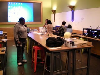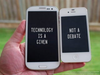 The document discusses emerging trends in libraries, highlighting the importance of adapting to consumer technology such as smartphones, social media, and wearable technology. It emphasizes the need for libraries to update policies and embrace new tools like 3D printers, digital media labs, and co-working spaces. The document concludes by encouraging libraries to differentiate between trends and fads while staying current with technological advancements.