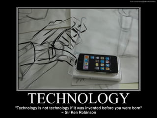 The document discusses emerging technology trends relevant to libraries, including the Internet of Things, mobile technology, consumer tech, wearable devices, smart machines, grassroots technology, and drones. It emphasizes the importance of adapting library services and spaces to incorporate these technologies for better user engagement and resource availability. The document concludes with a reminder for libraries to keep up with evolving tech to remain relevant.
