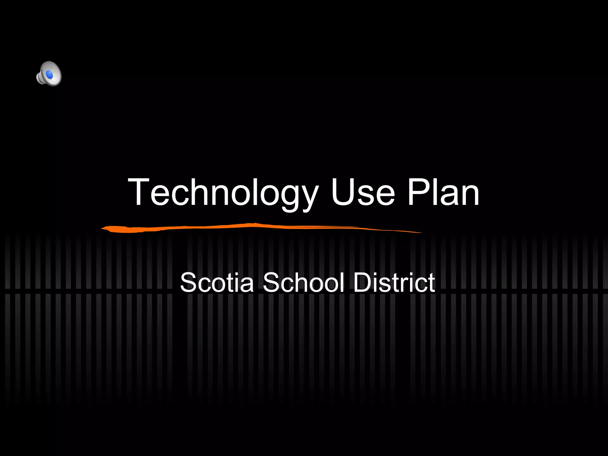 The document outlines a technology plan created by the Scotia School District to improve technology use among teachers and students. The plan was developed through surveys of technology needs and goals to enrich the curriculum with technology over the next few years. A planning team consisting of teachers, administrators, parents, students, and technology staff collaborated on the plan, which includes infrastructure improvements, professional development for teachers, and integrating technology into the existing curriculum. Progress will be evaluated through classroom observations and surveys to ensure the goals of the plan are being met.