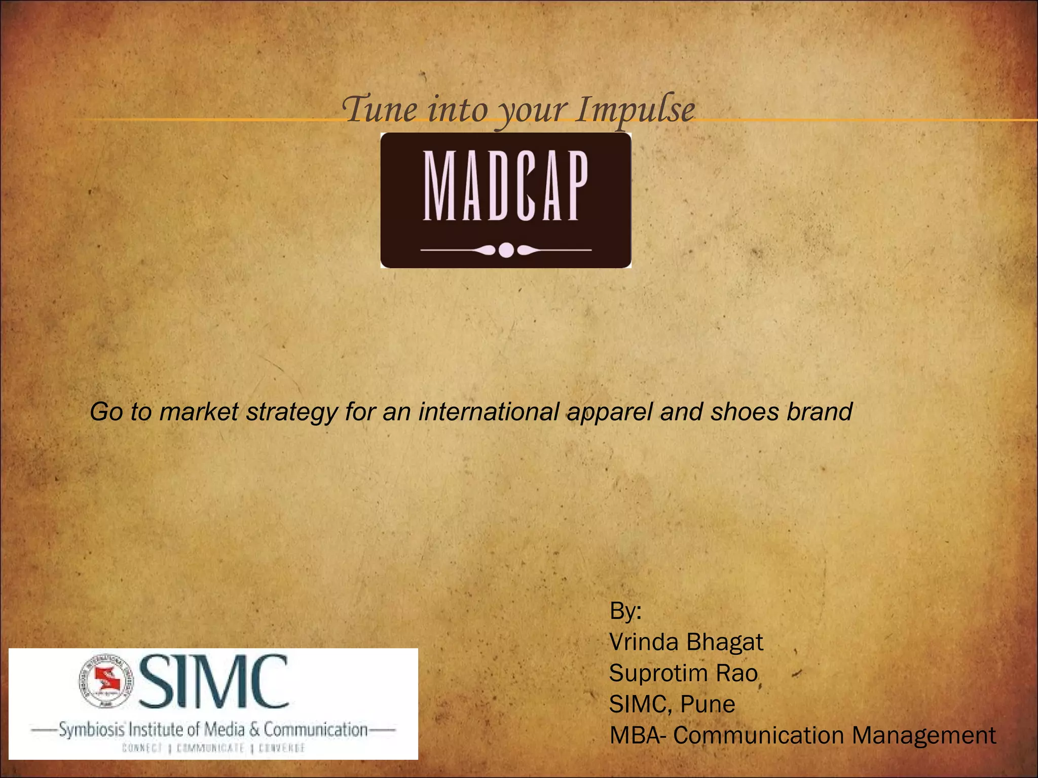 The document provides a market entry strategy for an Indian apparel and footwear brand called "Madcap". It summarizes the key points as follows: