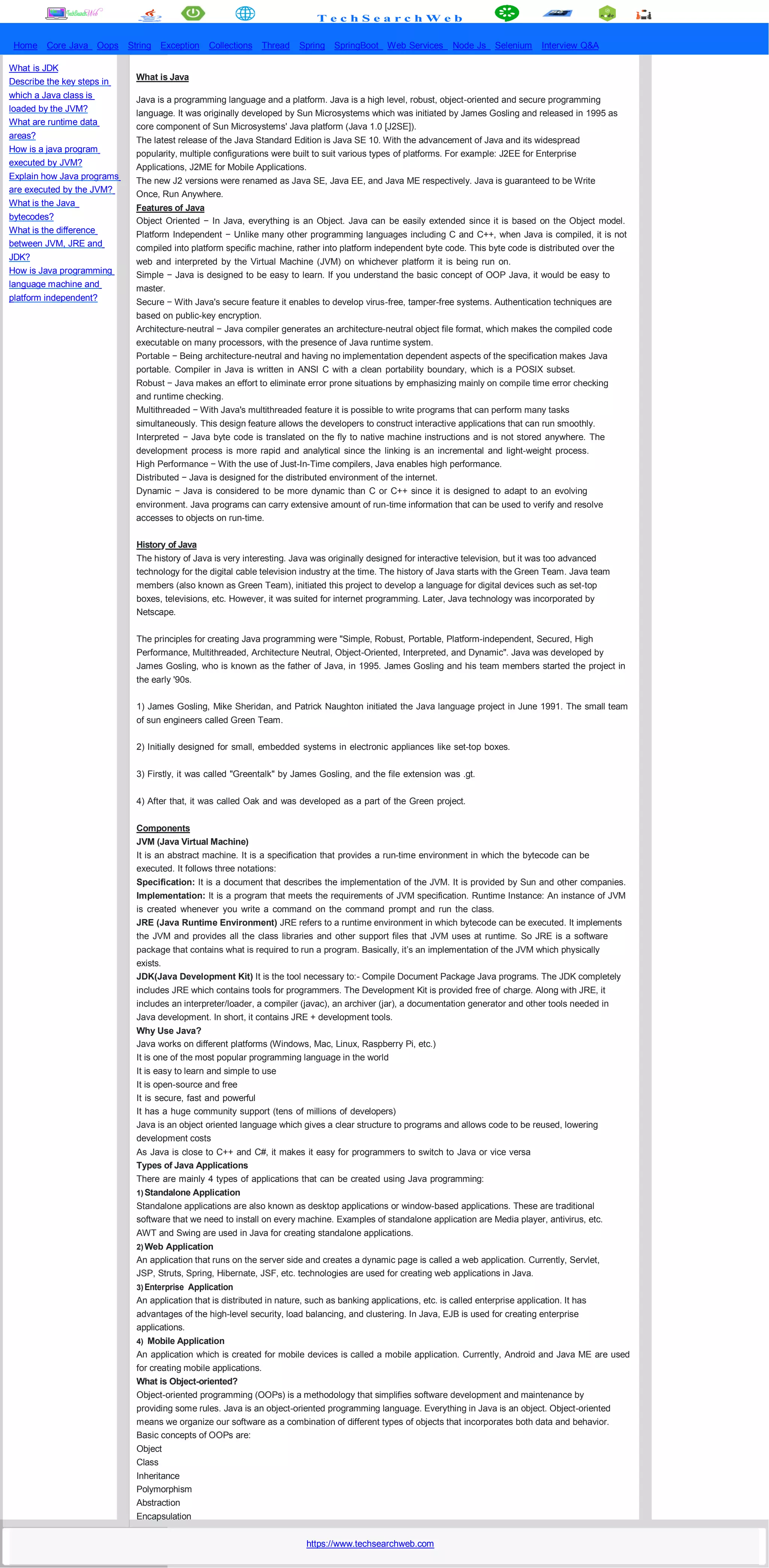 The document provides an overview of Java, a high-level, object-oriented programming language developed by Sun Microsystems, highlighting its features, history, components, and types of applications. Key aspects include Java's platform independence, security, simplicity, and multithreading capabilities, as well as the roles of the Java Virtual Machine (JVM), Java Runtime Environment (JRE), and Java Development Kit (JDK). Additionally, it explains the object-oriented programming principles that Java follows, making it a popular choice for various applications, including standalone, web, enterprise, and mobile applications.