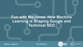 This document discusses how machine learning is shaping Google and technical SEO. It addresses how TF-IDF is not the best algorithm and that BM25 and machine learning take other factors into account. Wikimedia Research has released machine learning ranking models on GitHub. The document also discusses how Google may use click-through rate as a ranking factor alongside other signals processed by machine learning algorithms, and how techniques like query disambiguation, semantic relevance analysis, content deduplication, and evaluating click satisfaction should be focuses for technical SEO.