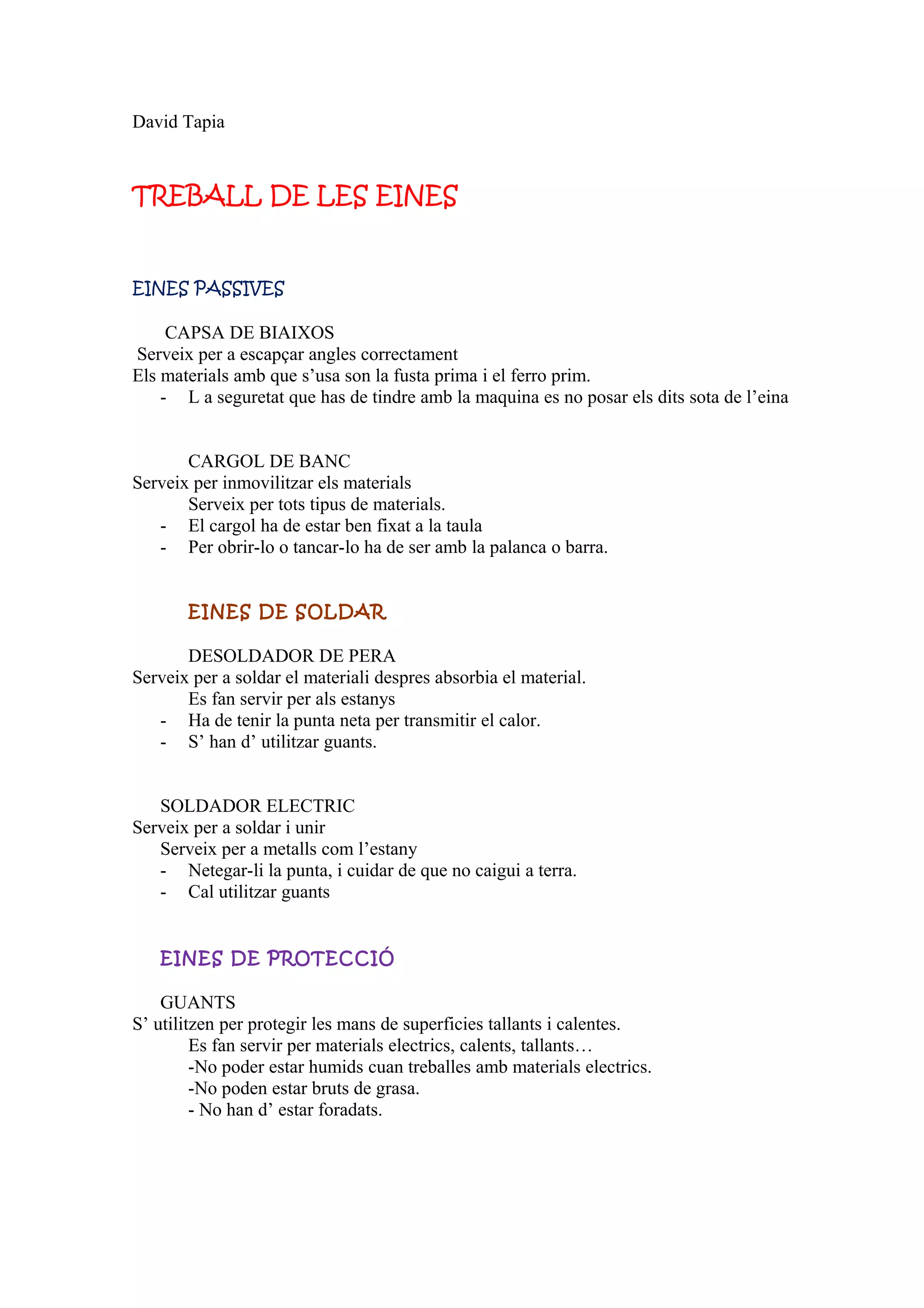 TREBALL DELES EINES