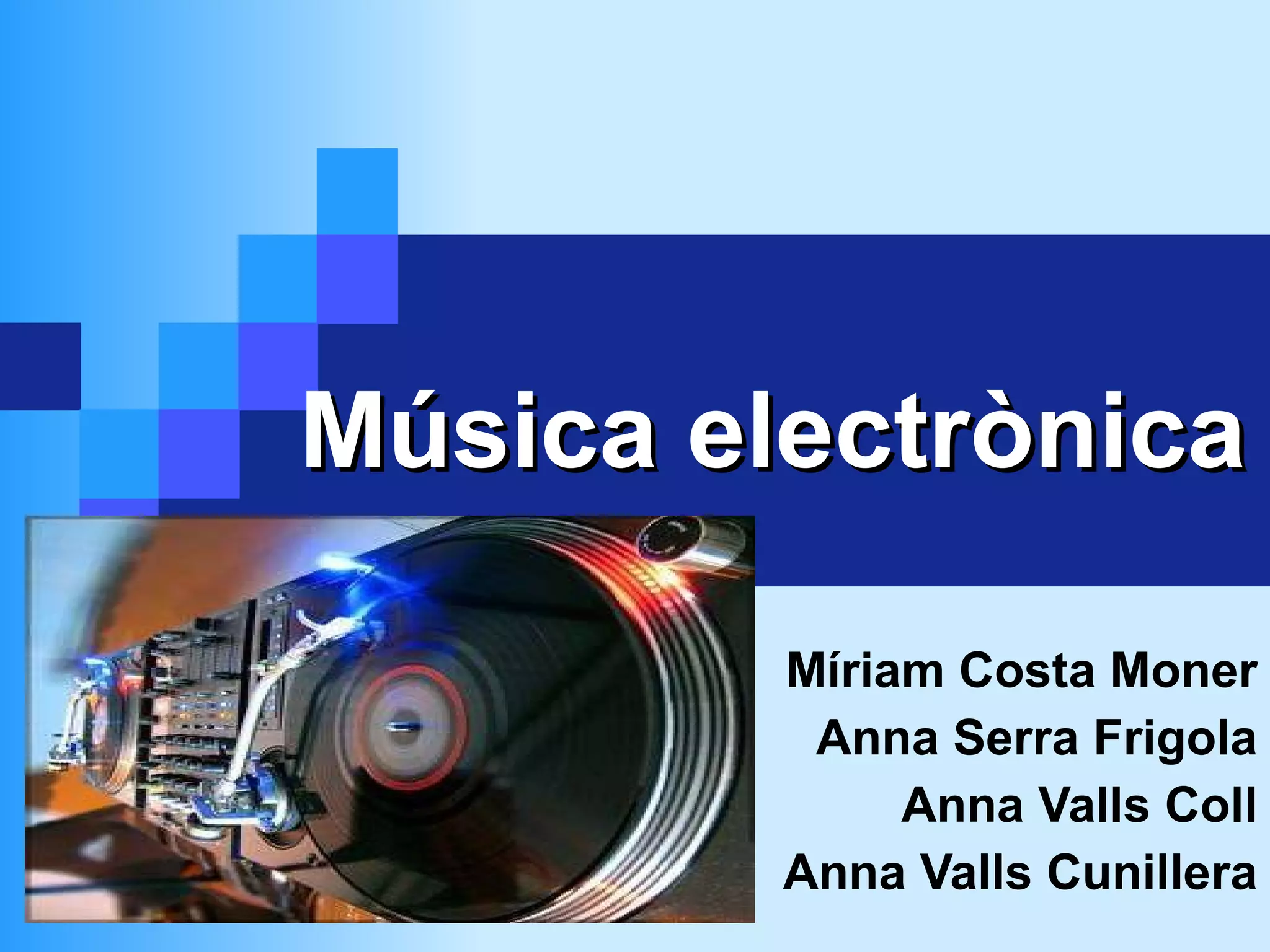 Electro -Inici: 1970-Potents sons electrònics -A vegades, sense lletra - Any important: 1980 -Sons electrònics importants però no són la base de la cançó