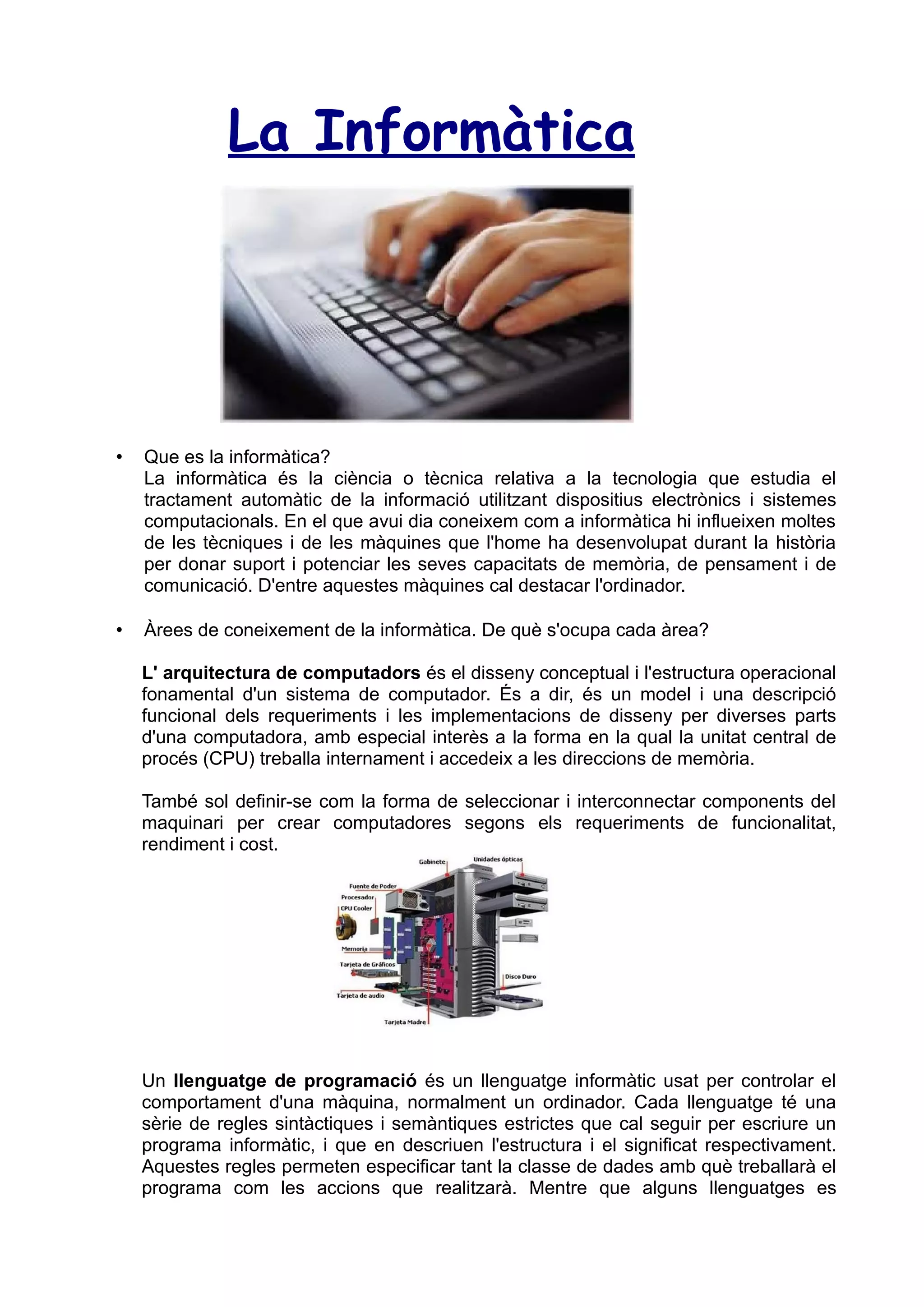 • Àrees de coneixement de la informàtica. De què s'ocupa cada àrea?