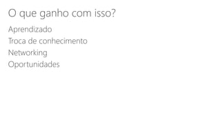 The document outlines the professional background and expertise of an individual involved in software development and consulting, highlighting their experience with Microsoft technologies and the .NET ecosystem. It provides insights into various tools, frameworks, and methodologies used in application lifecycle management, cloud computing, and open-source development. Additionally, it discusses the establishment of the Pantanet community aimed at fostering connections among tech professionals and students while promoting training and job opportunities.