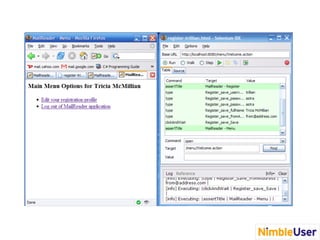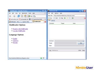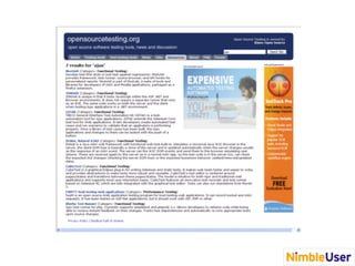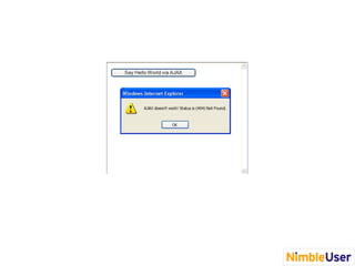 The document discusses how to simplify and automate testing of Ajax applications. It explores how Ajax works and why it complicates testing. It also covers when, where, and how to test Ajax components as well as how to test with continuous integration systems. The session will examine tools that can automate Ajax testing and integrate it into continuous integration workflows.