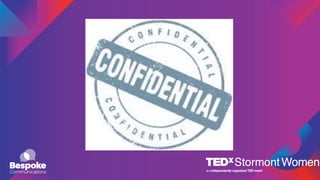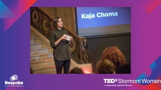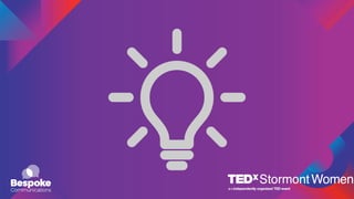 The document outlines information about TEDxStormont events, including the application process to speak, focusing on themes like motivation, creativity, and personal storytelling. It encourages potential speakers to articulate their ideas, share impactful experiences, and engage their audience effectively. Additionally, it emphasizes the importance of connecting with the audience through warmth and clarity, while offering links to resources and upcoming events.