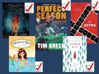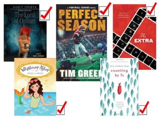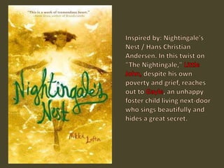 The document presents a diverse collection of stories and characters, including a twelve-year-old genius who navigates her obsession with nature, a boy clone tasked with ruling a drug empire, and a girl escaping Nazi persecution while working in a film. It also features various tales of adventure, friendship, and courage set against historical backdrops, such as Hurricane Katrina and the freedom summer of 1964. These narratives highlight themes of resilience and identity amidst challenging circumstances.