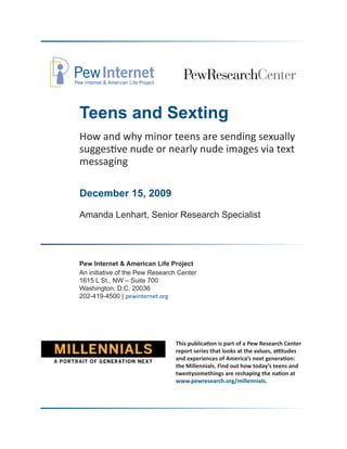 A Pew Research Center survey from 2009 found that 4% of cell-owning teens aged 12-17 reported sending sexually suggestive images, while 15% received such images. The study highlighted that older teens are more likely to engage in sexting, particularly among those who pay for their own phone bills. Concerns over sexting have led to legal scrutiny, with varying laws and enforcement across jurisdictions regarding the distribution of such images among minors.