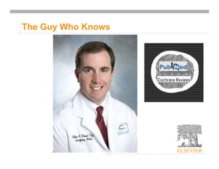 This document discusses delivering clinical knowledge and guidance directly into healthcare workflows through clinical decision support (CDS). CDS aims to provide clinicians and patients with intelligently filtered, situation-specific information to enhance patient care. The goal is to repurpose existing clinical content from various sources and deliver the most precise and useful information for each workflow and information need. Physician information needs were analyzed from query data to develop an ontology of needs. Content is curated, indexed as discrete facts, and tailored for specific situations by matching it to patient data, workflows, and information needs. Knowledge delivery aims to integrate actionable tools and options directly into clinical systems like EHRs.