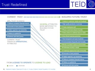 The document is a presentation about the Turkish Business Ethics Association (TEID). It provides information on TEID's founding, growth in membership, activities promoting ethics in business, and goals to better serve Turkish business. Key information includes that TEID was established in 2010 by 11 founding members and has since grown to over 45 members, with a combined revenue of over $80 billion and over 100,000 employees. The presentation also describes TEID's annual ethics summits, academic platform, and social media presence used to promote ethical business practices.