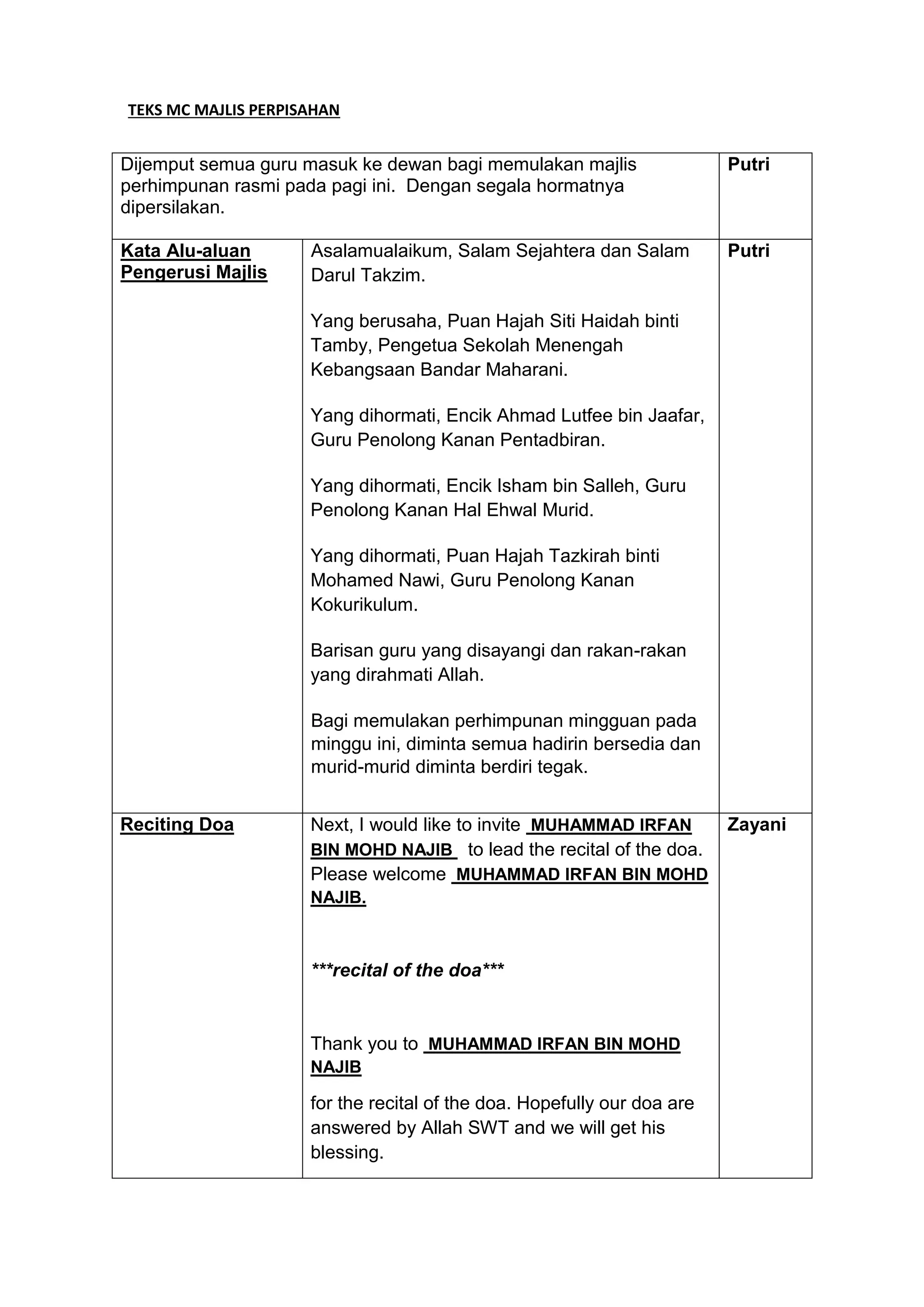 Perhimpunan rasmi diadakan di SMK Bandar Maharani dengan kehadiran semua guru dan murid. Acara dimulakan dengan doa, nyanyian lagu-lagu kebangsaan, dan ucapan oleh guru-guru termasuk pengetua. Majlis diakhiri dengan pesan untuk menghargai amanat yang telah disampaikan.