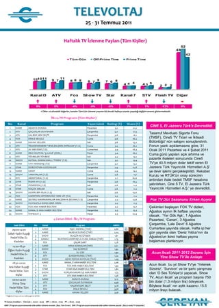 • Oklar ve altındaki değerler, kanalın Tüm-Gün izlenme payının bir önceki haftaya oranla yaşadığı değişim oranını göstermektedir.