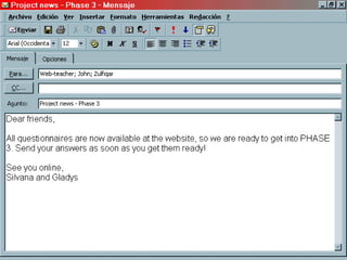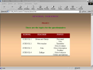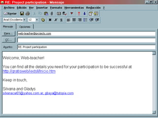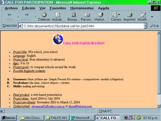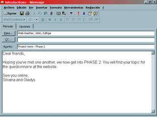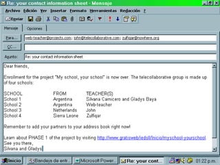 A slide-by-slide guide to understand how a teacher can get started carrying out telecollaborative projects (a simulation based on the IEARN project "MY School, Your School").
