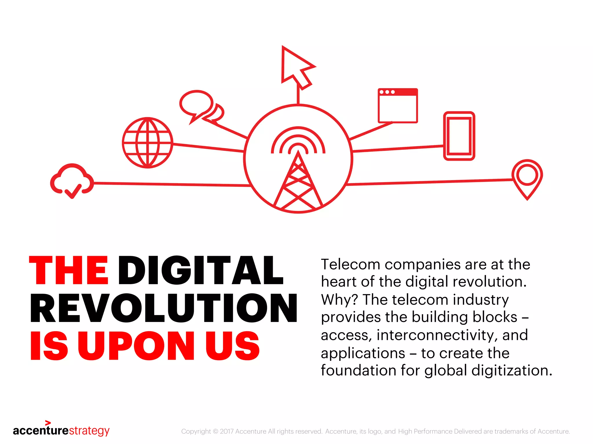 The document outlines the critical role of telecom companies in the ongoing digital revolution, emphasizing their provision of foundational elements such as access and interconnectivity. It highlights the potential for telecom to generate over $10 trillion in new value by digitalizing key industries and developing new business models beyond traditional frameworks. Additionally, it stresses the need for network transformation, corporate culture changes, and regulatory adaptations to successfully navigate this digital landscape.