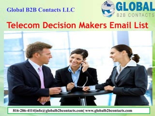 Global B2B Contacts offers a telecom decision makers email list designed to enhance multi-channel marketing campaigns by providing access to qualified professionals with decision-making power. The service guarantees high conversion rates, maximum response rates, and targeted data to optimize marketing efforts. Their comprehensive database includes essential contact information and is regularly updated to ensure accuracy.