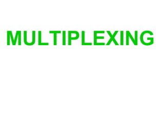 Multiplexing allows a single medium to carry multiple signals simultaneously by dividing the medium into multiple channels. Time division multiplexing (TDM) divides the medium into time slots so that each signal is assigned a time slot. In TDM, time on the medium is shared equally between channels, with each channel receiving a specified time slot regardless of whether it has data to transmit. This makes TDM more efficient than frequency division multiplexing, which uses guard bands between channels and can waste capacity.
