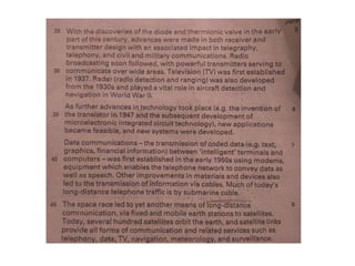 The document provides an introduction to telecommunications. It discusses how telecommunications has become important for long-distance communication, education, business, entertainment and more. Telecommunications allows people to communicate across great distances through methods like video calls, email, chat and phone calls. It connects people worldwide and impacts many businesses. The document defines telecommunications as the electronic transmission of voice, data, text, images and video over long distances using various mediums such as radio waves, microwaves and fiber optic cables. Telecommunication networks consist of multiple transmitting and receiving stations.