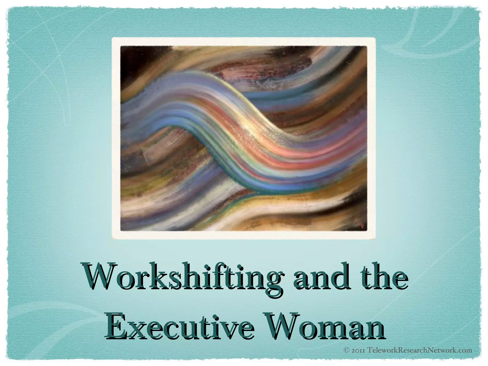 The document discusses workshifting as a new flexibility concept for executive women, emphasizing the importance of thinking outside traditional work structures. It highlights the benefits of workshifting in terms of cost savings for companies, sustainability, and personal well-being, while identifying trust as a key barrier to implementation. Additionally, it offers contact information for consulting services on workplace flexibility and telework.