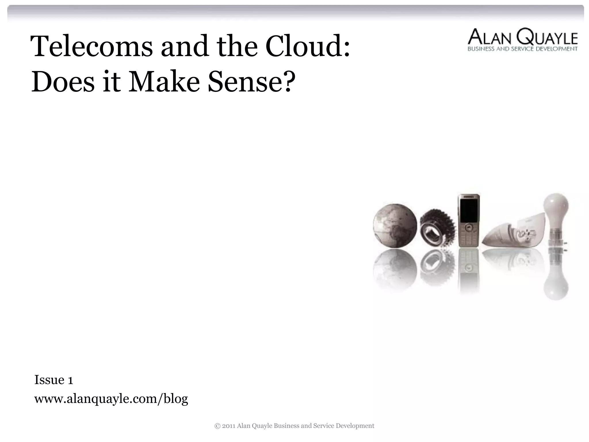 This document discusses whether telecom companies should become cloud providers. It outlines some potential benefits, such as leveraging existing investments in data centers and networks, defending existing franchises from competitors, and preserving customer relationships. However, it also notes challenges like meeting enterprise-grade service level agreements and avoiding vendor lock-in. In conclusion, the document advises telecom companies not to rely solely on cloud computing and to maintain a diverse portfolio of services and business models.