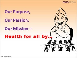The document discusses a mobile application-based model for delivering homeopathic medical services. It details how over 14,000 patients were seen in one year using telehomeopathy. Success stories are provided. The model is presented as being well-suited for countries in the Indian subcontinent due to infrastructure and costs. The mobile app would provide homeopathic solutions for common human, veterinary, and agricultural conditions. Challenges of implementing it across India are addressed. The pilot project was well received and this low-cost model could be replicated worldwide to serve remote populations.