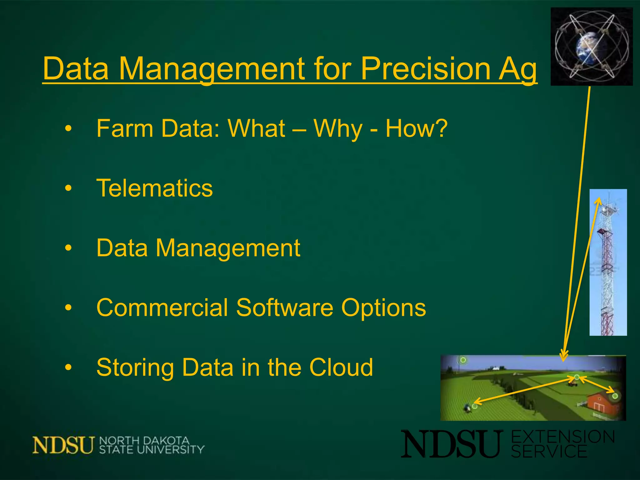 The document covers data management in precision agriculture, including the types of data collected (e.g., soil, yield, weather) and the benefits of effective data management such as increased efficiency and yields. It outlines telematics technologies and various commercial software options available for managing agricultural data, along with examples of specific software and their features. The summary also emphasizes the importance of precision agriculture in maximizing profits, reducing inputs, and addressing global food demands.