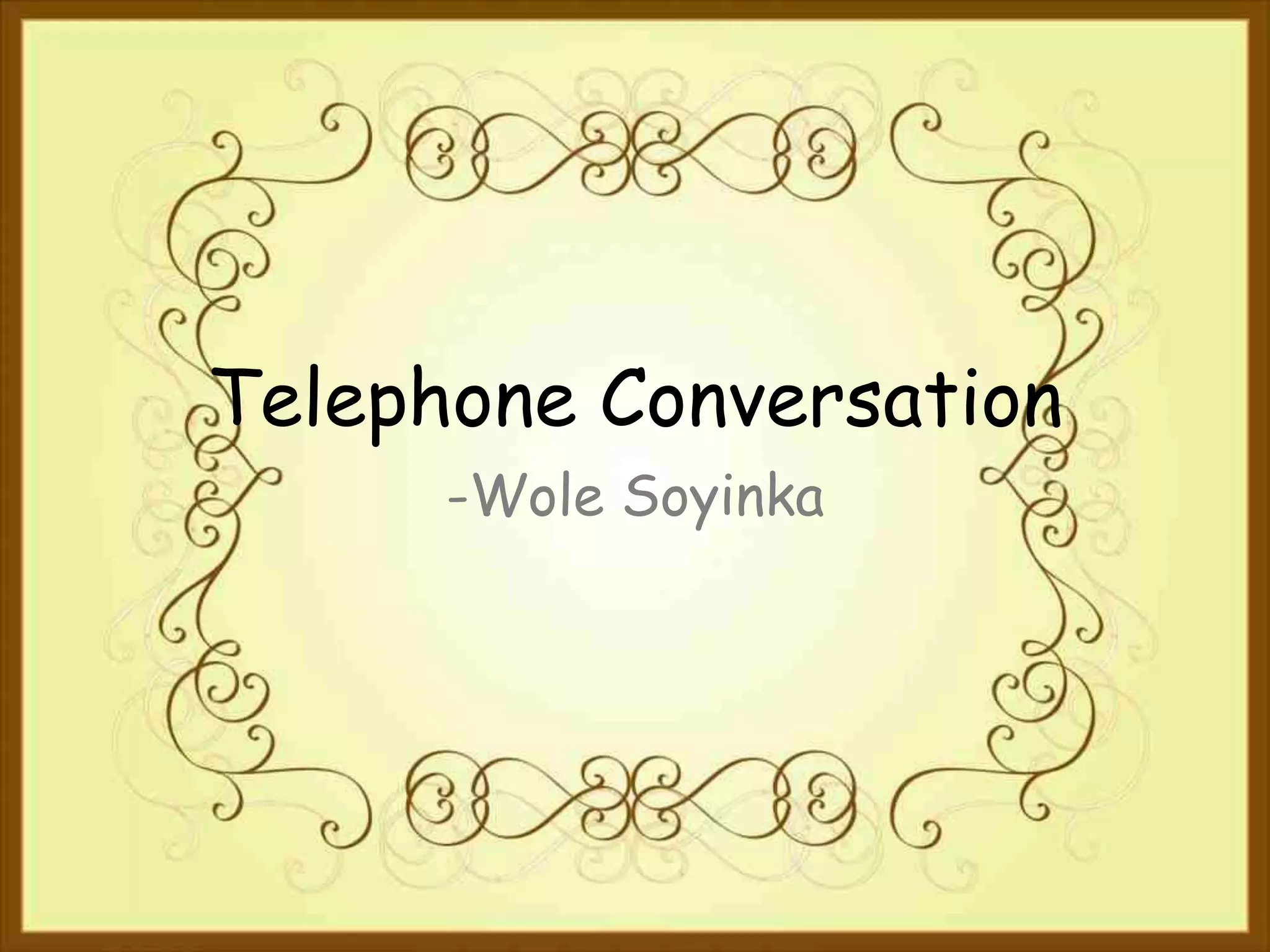 - The speaker, an African man, is looking to rent a room from a landlady over the phone. When asked about his race, the conversation takes an uncomfortable turn as the landlady asks "how dark" he is and whether he is "light or very dark." The speaker tries to deflect by comparing his skin tone to types of chocolate. Frustrated by her lack of understanding, he humorously describes different parts of his body as different shades to show the complexity of race.