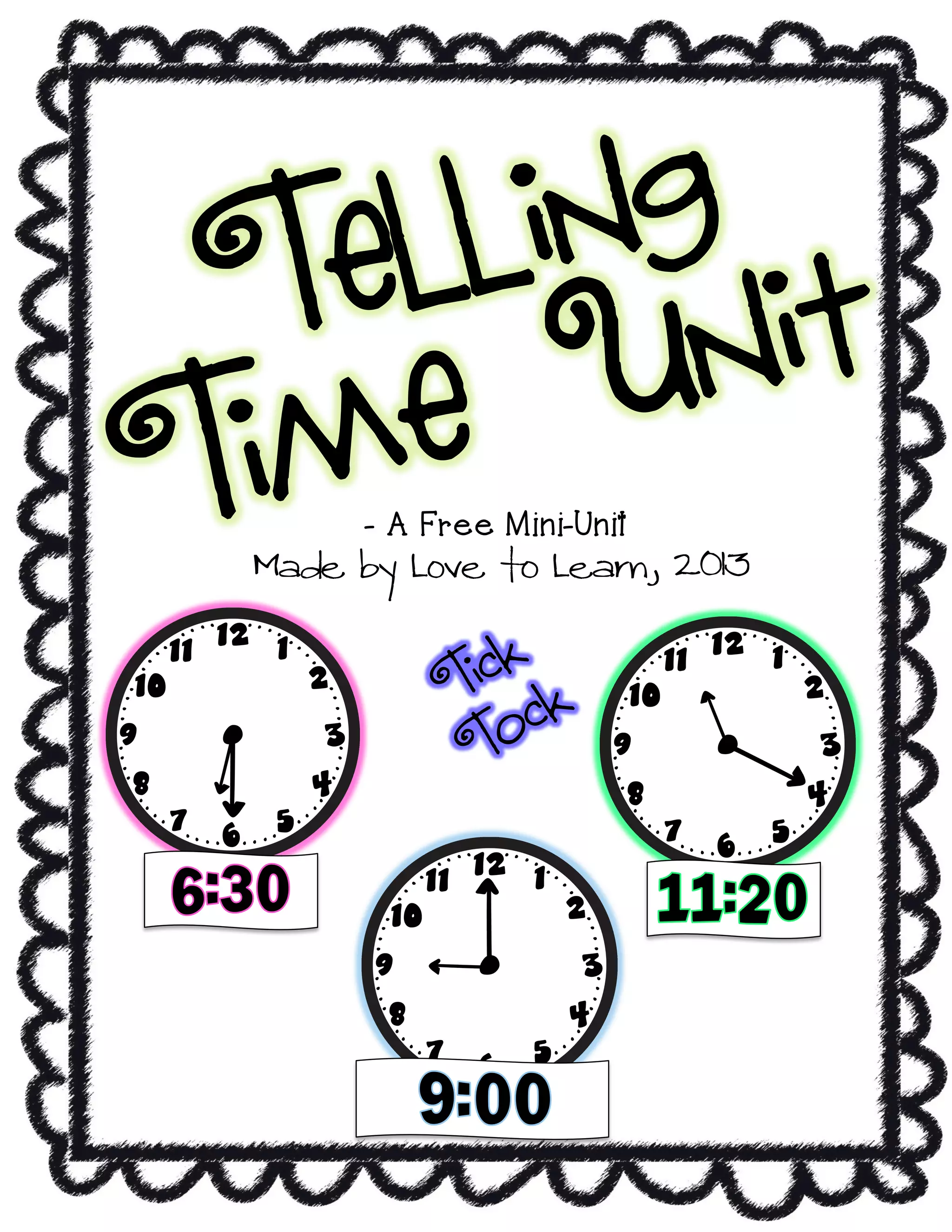 This document provides instructions and materials for a telling time unit. It includes worksheets for students to practice telling analog and digital time to the hour and half hour. Worksheets have students write times, draw clock hands, and identify whether events occur in the morning or afternoon. Answer keys are provided. The document was created by Love to Learn in 2013 to supplement time teaching and includes credits for graphics and fonts used.