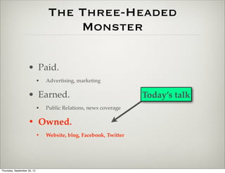 The document is a guide for startups on utilizing public relations and social media effectively to build brand awareness and relationships. It emphasizes the integration of various platforms like Facebook, Twitter, LinkedIn, and Google+ while providing tips for daily engagement and maintaining an online presence. Key strategies include creating personal and company profiles, posting regular updates, and leveraging tools like Hootsuite for social media management.