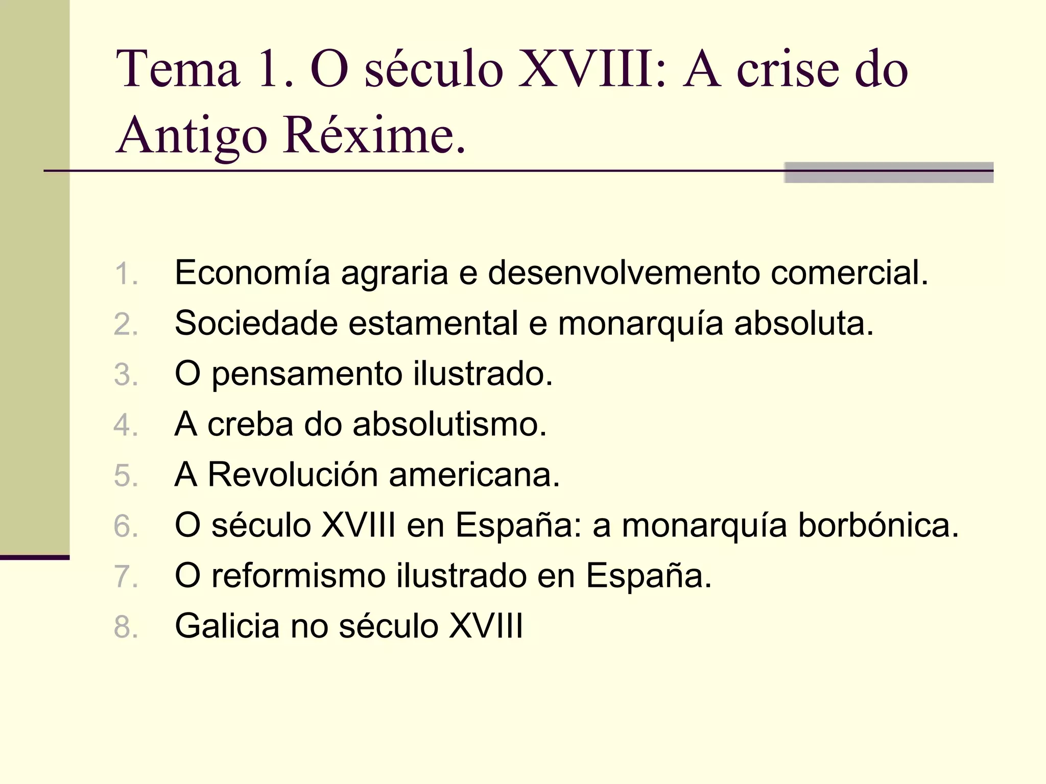 Tema 1. Oséculo XVIII: A crise do