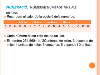 NUMERACIÓ: NUMERAR NÚMEROSFINS ALS