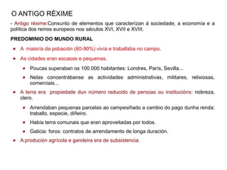 -Antigo réxime:Conxunto de elementos que caracterízan á sociedade, a economía e a