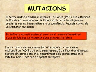 El terme mutacióes deu al botànic H. de Vries (1901), que estudiant