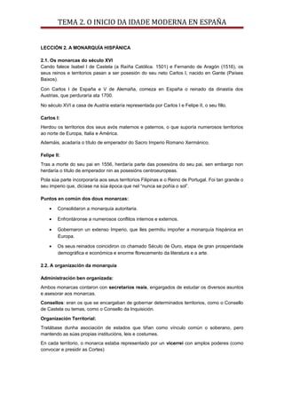 TEMA 2. OINICIO DA IDADE MODERNA EN ESPAÑA