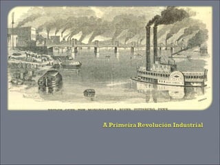 ¿Por qué selevou a cabo en Gran Bretaña? ( Factores que favoreceron ao nacemento en Gran Bretaña da Revolución Industrial): As revolucións políticas que sucederon no século XVII en Inglaterra, produciron importantes cambios sociais; deste xeito, a sociedade estamental dera paso á de clases, basada en criterios económicos. O poderío naval británico permitiulle controlar as rutas comerciais do océano e acumular grandes capitais procedentes do comercio colonial. Estes cartos investíronse na agricultura e a industria . Os cambios nas mentalidades propiciaron: A aparición de técnicos interesados na mellora da maquinaria . Creouse un sistema de protección de patentes que incentivou ás invencións. As vantaxes naturais facilitaban e abarataban o transporte fluvial e marítimo, ao que se sumou a construcción de canais. A abundancia de recursos minerais (hulla); a minaría do carbón foi a orixe de invencións clave (máquina de vapor, raís de ferro, etc.)