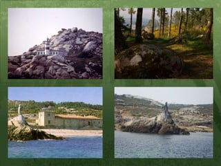 Illa de SálvoraOndeestá? Na desembocadura da ría de Arousa.Ten dous kilómetros de máxima anchura en dirección norte-sur. Súas principais alturas os altozanos de Milreu e As Galleiras. Só está habitada por caseiros e guardans.Cómo chegar? Pódese visitar a illa de Sálvora realizando a "Ruta da Agua"; Ons, Arousa e SálvoraQué podes ver? O Faro da illa de Sálvora está situado na parte máis saínte, ao sur da illa, lugar coñecido como Punta Besugueiros; fue construido en 1847 ampliado en 1954.Súa costa é un enorme viveiro natural de mariscos, especialmente de percebes.