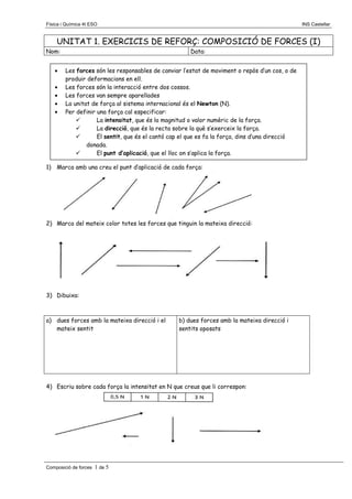 UNITAT 1. EXERCICIS DE REFORÇ: COMPOSICIÓ DE FORCES (I)