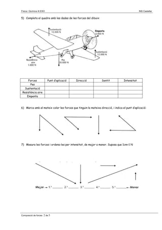 6) Marca amb el mateix color les forces que tinguin la mateixa direcció, i indica el punt d’aplicació: