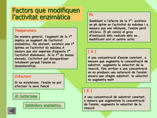 d’acció enzimàtica la reacció perquè disminueixen