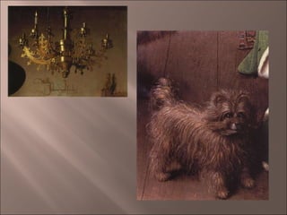 OBRA: O matrimonioArnolfini ESTILO: FLAMENCO do S. XV AUTOR: Jan Van Eyck CRONOLOXÍA: 1434 MATERIAL: Táboa TÉCNICA: pintura o ÓLEO