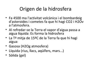 Tema 9 1. 2. Origen de la hidrosfera