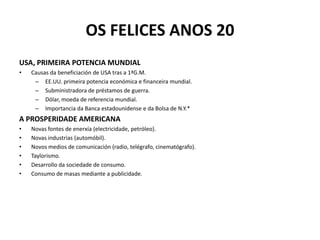• Causas da beneficiación de USA tras a 1ªG.M.