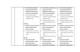 Dokumen ini menjelaskan pemetaan indikator pembelajaran untuk tema 'Aku dan Keluargaku' di kelas III. Terdapat berbagai mata pelajaran yang mencakup pendidikan kewarganegaraan, bahasa, matematika, ilmu pengetahuan alam, dan seni, dengan penekanan pada keterampilan mendengarkan, berbicara, membaca, dan menulis. Materi berfokus pada identifikasi lingkungan, pengelompokan makhluk hidup, serta pengenalan simbol dan nada dalam seni musik.