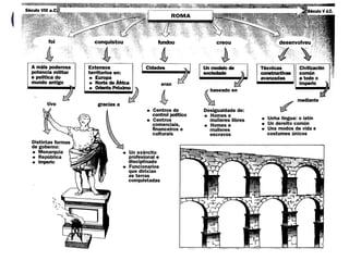 A expansión deRoma. A Conquista do Mediterráneo O crecemento da súa riqueza e un numeroso e eficaz exército permitíronlle a Roma a conquista de enormes territorios . Entre o 500 e o 250 a.C, a cidade de Roma apropiouse da Península Itálica . Entre os anos 264 e 146 a.C., Roma enfrontouse a Cartago, nas denominadas guerras púnicas , e conquistou o Mediterráneo occidental . 12