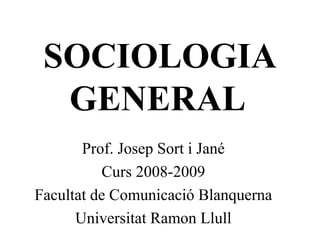 SOCIOLOGIA GENERAL Prof. Josep Sort i Jané Curs 2008-2009 Facultat de Comunicació Blanquerna Universitat Ramon Llull