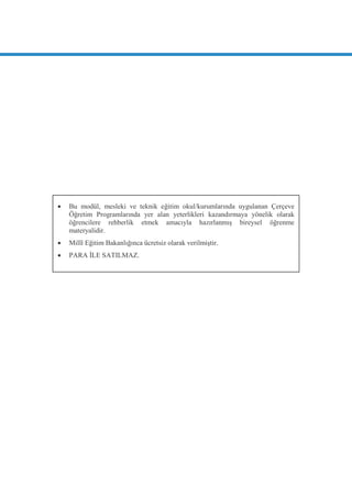 Bu modül,mesleki ve teknik eğitim okul/kurumlarında uygulanan Çerçeve