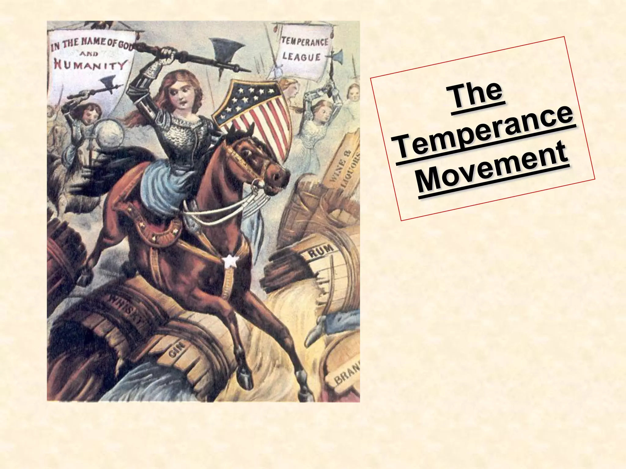 The Temperance Movement aimed to reduce alcohol consumption and prohibit alcoholic beverages. Members criticized overdrinking and advocated complete abstinence. Support came from those concerned about men spending wages on alcohol instead of their families, alcohol-related sickness and violence. Business owners backed it to avoid drunk workers. Carry Nation was a famous supporter who destroyed saloons. The 18th Amendment prohibited alcohol manufacture and sale in the U.S., but unexpected consequences included increased homemade and smuggled alcohol as well as illegal speakeasies.