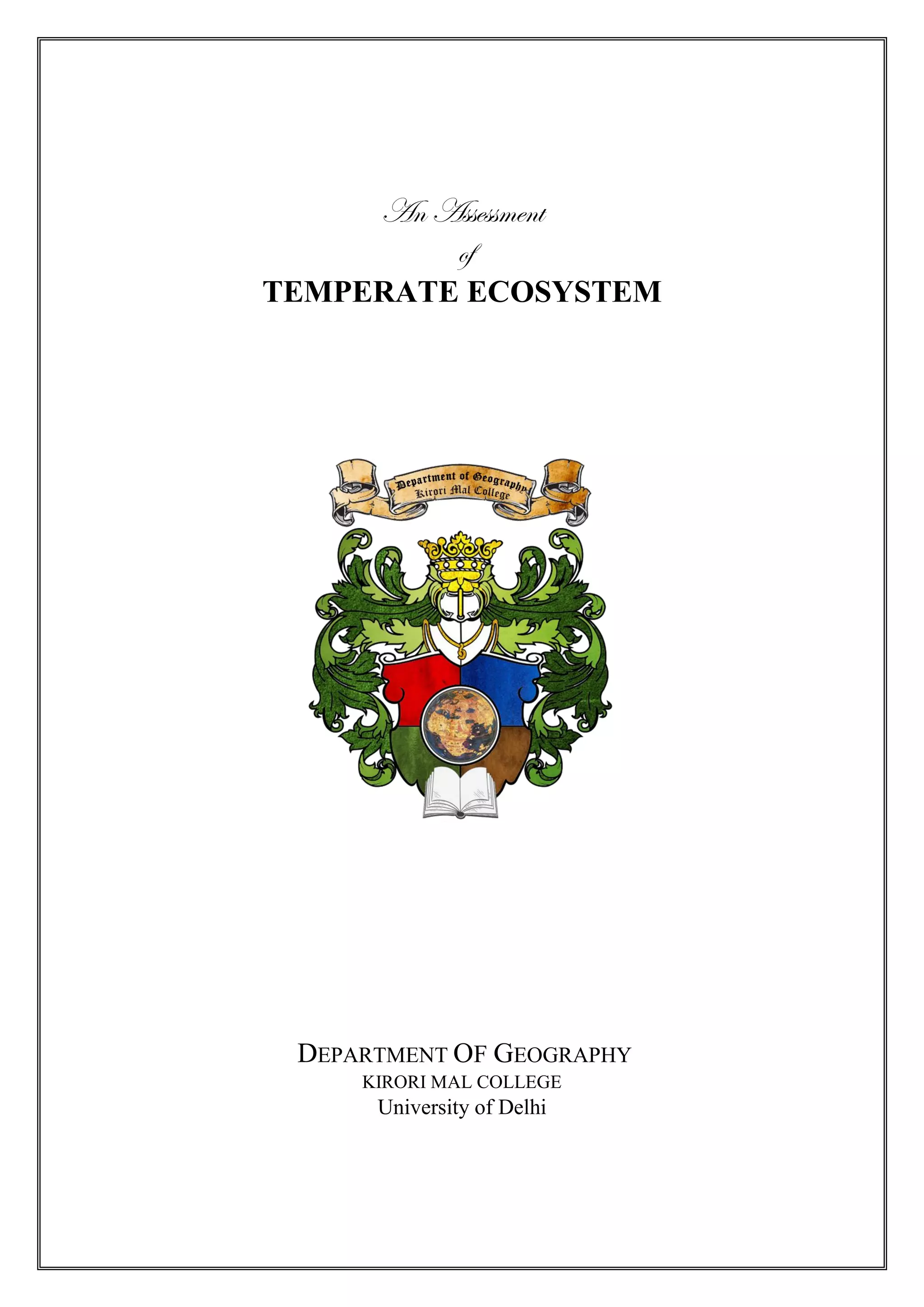 This document assesses the temperate ecosystem, discussing its geological evolution, climatic conditions, and challenges leading to land degradation and biodiversity loss. It highlights the impact of human activities on these ecosystems and emphasizes the need for conservation efforts. The document also traces the historical geological changes on Earth, focusing on the formation and destruction of supercontinents and their significance in shaping present-day environments.
